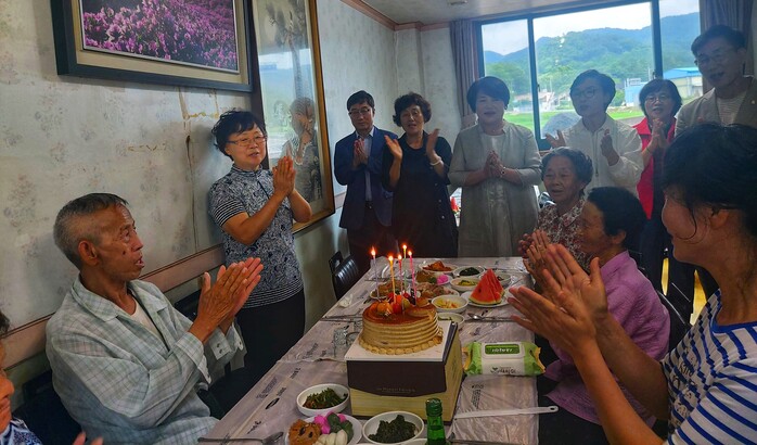 박희종 가회면장은 “회원분들이 마련한 음식 맛있게 드시고, 더운 날씨에 항상 건강 조심하시길 바란다”는 당부와 함께 생신상을 준비한 자원봉사회원분들께 감사함을 전했다.