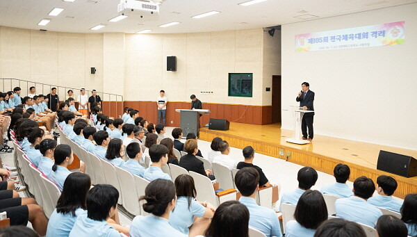[인천=김형만 기자] 도성훈 인천시교육감은 9월 11일 인천체육고등학교를 방문해 제105회 전국체육대회에 참가하는 선수단을 격려했다.