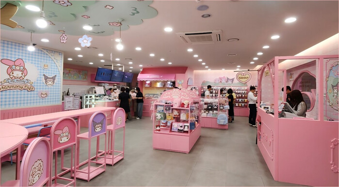 서울 잠실에 오픈한 ‘마이멜로디 하모니카페’ 매장은 산리오캐릭터즈의 팬과 일반 방문객 모두가 즐길 수 있는 복합문화공간으로, 음료·디저트뿐만 아니라 마이멜로디 테마의 전시와 한정판 굿즈 구매까지 가능한 ‘올인원’ 콘셉트를 지향한다.
