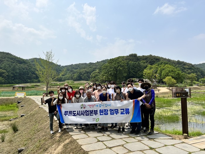 청주시 푸른도시사업본부는 10일 ‘현장에 답이 있다!’를 주제로 본부 직원 27명이 현장(새적굴공원 등 4곳) 업무교류를 실시했다.