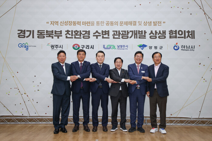 구리시(시장 백경현), 남양주시(시장 주광덕), 양평군(군수 전진선), 가평군(군수 서태원), 광주시(시장 방세환), 하남시(시장 이현재)는 지난 22일 ‘경기 동북부 수변 중심의 친환경 관광거점 조성’을 위한 공동건의서를 경기도에 제출했다고 23일 밝혔다. 이는 해당 지역의 규제와 희생의 역사적 부담을 넘어, 수변 공간을 미래 성장의 기회로 전환하기 위한 첫 공동 행보다.