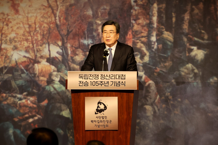 권오을 장관은 축사에서 "독립군과 광복군이 대한민국 국군의 뿌리라는 이재명 대통령 말씀에 공감한다"며 "청산리대첩은 독립군의 역사 중에서도 승전의 기록"이라고 말했다.
