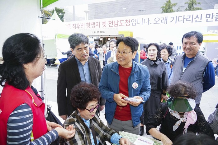 | ▲ 강기정 광주광역시장이 19일 오후 동구 5·18민주광장에서 열린 '2024 광주시 자원봉사 박람회'에 참석해 부스를 둘러보며 봉사자들을 격려하고 있다./광주광역시 제공 |