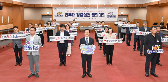 진주시는 14일 시청 시민홀에서 청렴도 향상을 위한 청렴시책 추진사항 보고회를 열고 간부공무원의 청렴실천 의지를 다짐했다.