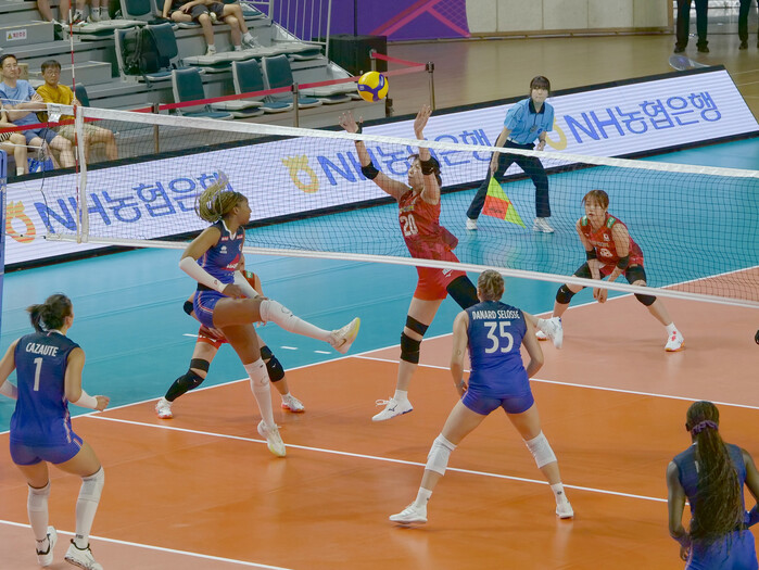 진주실내체육관에서 12일 오후 1시 ‘2025 코리아 인비테이셔널 진주국제여자배구대회’의 첫 경기가 일본과 프랑스의 맞대결로 화려하게 막을 올렸다.