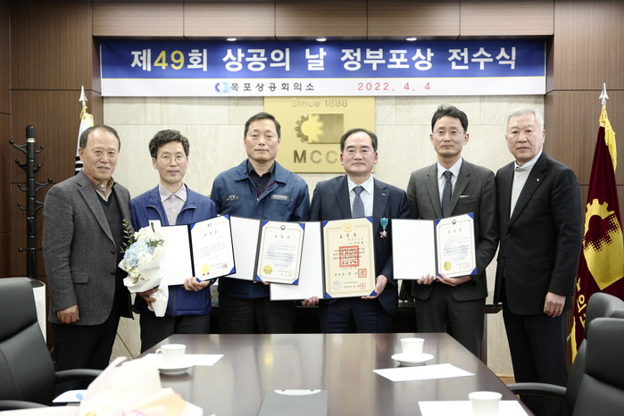 목포상공회의소는 4일 목포상공회의소 회장실에서 제49회 상공의날을 맞이하여, 관내 회원업체 상공인 및 관리자 유공자에 대한 정부포상 전수식을 진행했다.