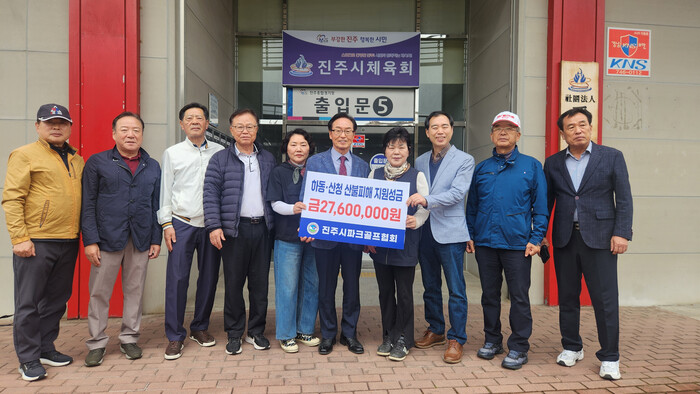 진주시파크골프협회(협회장 노민섭)는 14일 하동. 산청 지역에서 발생한 산불로 피해를 입은 주민들을 돕기 위해 경남 사회복지공동모금회를 통해 성금 2760만 원을 전달했다.