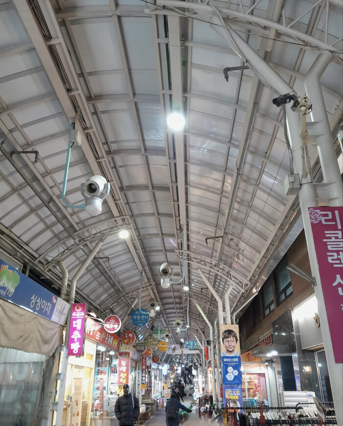 공사 구역은 북문에서 남문까지 이르는 약 551m의 중앙통로로, 구는 노후 보안등 98개를 LED 조명으로 교체하고 분전반 4개를 새로 설치했다.