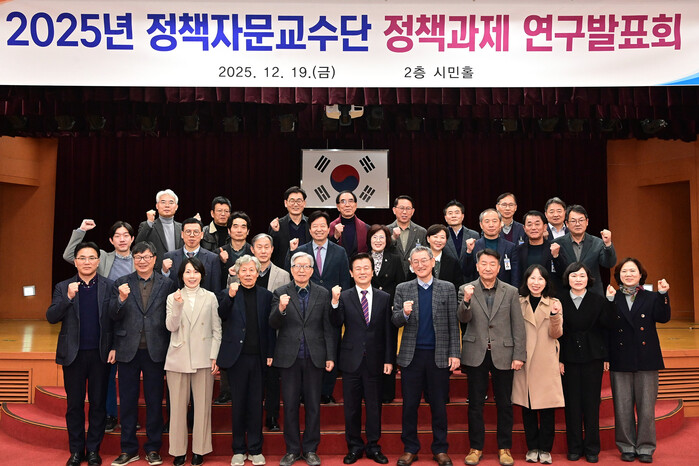 진주시는 19일 진주시청 시민홀에서 조규일 시장을 비롯해 정책자문교수단, 공무원 등 120여 명이 참석한 가운데 ‘2025년도 정책자문교수단 정책과제 연구발표회’를 개최했다.
