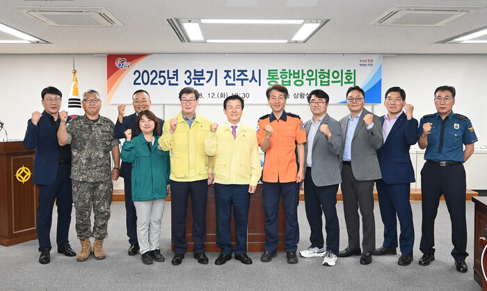 진주시통합방위협의회(의장 조규일 진주시장)는 12일 오전 시청 5층 상황실에서 통합방위 위원 20여 명이 참석한 가운데 ‘2025년 3분기 진주시 통합방위회의’를 개최했다.