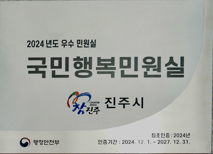 한편, 진주시는 시민 중심의 민원행정을 위해 ▲수요 야간민원실 ▲무인 민원발급기 30개소 ▲ 120기동대 ▲전문가 민원상담코너 ‘풀리고’ 등을 운영하며 민원서비스 향상에 힘쓰고 있다.