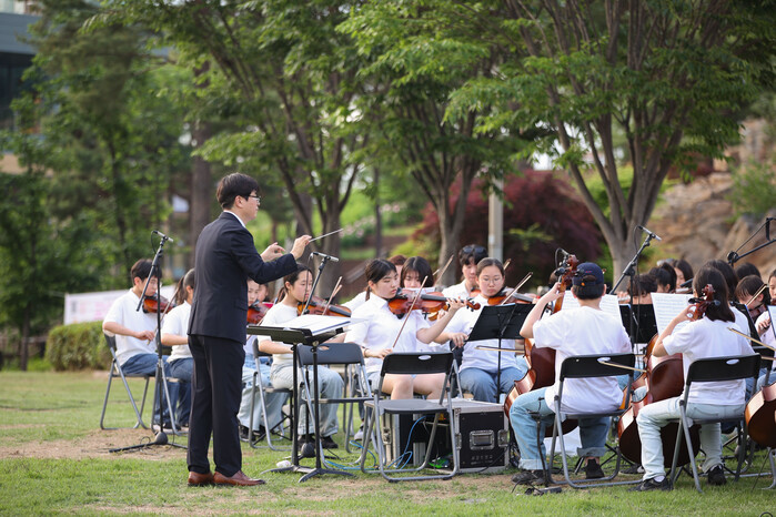 이날 공연은 ‘음악으로 하나 되는 우리, 소리로 그리는 우리의 꿈’을 주제로 △베토벤 교향곡 합창 4악장 △고향의 봄 △꿈꾸지 않으면 △사건의 지평선 등 친숙한 연주곡과 동요, 가요 등으로 구성됐다.