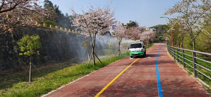 또한 주요 산책로와 공원, 등산로 등 시민들이 자주 이용하는 장소나 방역취약지역에 해충기피제 자동분사기 37대와 친환경 해충유인살충기 400대를 상시 가동하고 있다.
