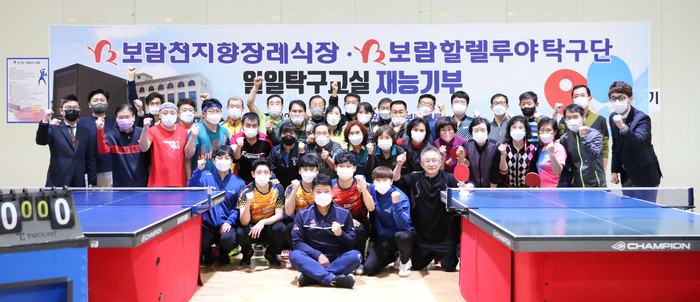 한편, 보람상조 실업탁구팀 보람할렐루야는 지난 2017년부터 서울, 인천, 천안, 당진, 부산, 광주 등 전국적으로 탁구강습회를 개최하며 재능기부 활동과 탁구용품 전달 행사를 꾸준히 진행해왔으며 코로나19 극복 헌혈캠페인 등에 앞장서며 스포츠를 통한 나눔 실천을 지속하고 있다.