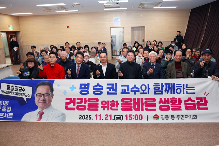 [시민일보=문찬식 기자] 인천시 중구의회가 21일 열린 영종1동 ‘명사 초청 토크콘서트’ 행사에 참석, 주민들과 함께 건강한 생활 습관에 대해 배우는 시간을 가졌다.