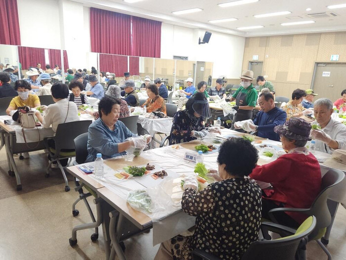 교육에 이어, 노인일자리 참여 어르신들의 노고를 격려하고, 참여자 간 화합 도모를 위한 문화체험활동을 진행했다. 전문 강사의 설명하에 어르신들이 직접 샌드위치와 샐러드를 만들어보면서 그동안 누적된 피로를 풀고 재충전의 시간을 가졌다.