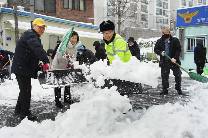 류 구청장도 상봉동 일대와 망우역사문화공원에서 제설작업에 나섰다. 주민들과 함께 상봉동 골목 구석구석과 망우역사문화공원 내 인물 가벽, 유관순 열사 합장 묘역 등에서 직접 눈을 치우며 구민들의 안전을 챙겼다.