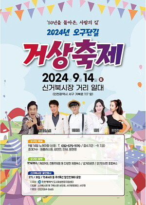 [인천=김형만 기자] 인천시는 9월 14일, 서구 석남동 거북시장거리(석남동 618) 일대에서 ‘2024년 하반기 추석 오구단길 거상축제'를 개최한다고 11일 밝혔다.