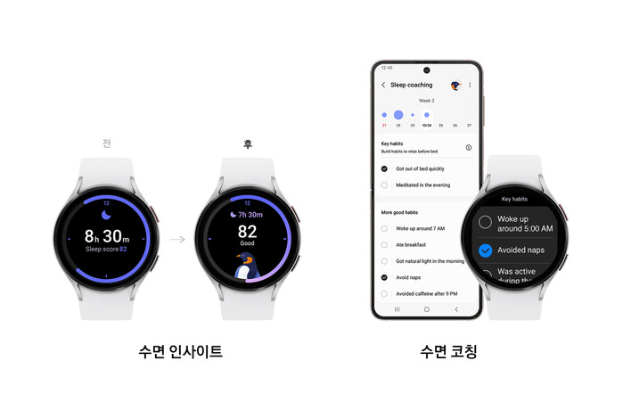 삼성전자는 사용자의 더 나은 수면을 위해 개인 수면 패턴의 이해, 건강한 습관 형성, 최적화된 수면 환경 조성을 강조해왔다. 이를 기반으로 '원 UI 5 워치'를 통해 수면 관리 기능을 더욱 강화했다.