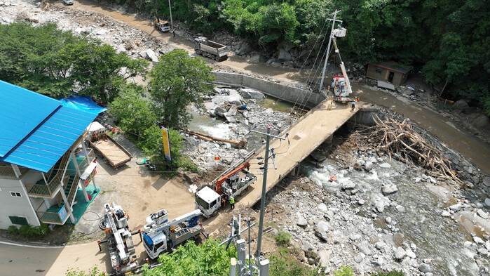 KT, LG유플러스, SK텔레콤 등 통신 3사는 가평군 일대에 이동기지국 7대와 외부 중계기 120여 대를 투입했다. 현재까지 통신 복구율은 지역에 따라 50~70%에 이른다. 다만, 산사태 피해가 큰 지역은 복구에 다소 시간이 소요될 것으로 보인다.