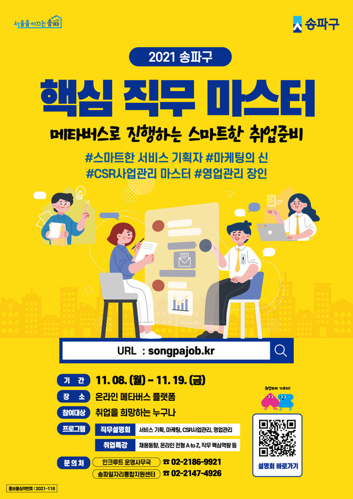 | ▲ 송파구가 11월 19일까지 메타버스를 활용한 취업지원 프로그램 ‘핵심 직무 마스터’를 운영한다. (사진제공=송파구청) |
