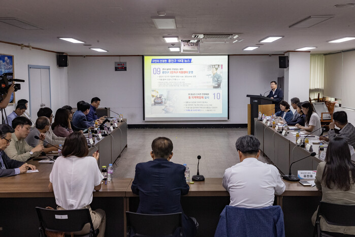 이 자리에서 김 구청장은 온라인 설문조사를 통해 선정된 광진구 10대 뉴스를 직접 설명했다.