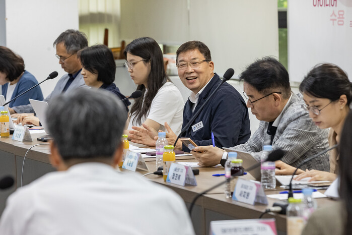 | ▲ 30일 진행된 언론인 간담회에서 김경호 구청장(가운데)이 기자들과 이야기를 나누고 있다.(사진=광진구청) |