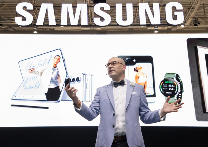 | ▲ 8월 31일(현지시간) 독일 베를린에서 열리는 유럽 최대 가전전시회 'IFA 2023'의 '삼성 프레스 컨퍼런스'에서 삼성전자 구주총괄 마케팅팀장 벤자민 브라운(Benjamin Braun) 상무가 '갤럭시 Z 플립5'와 '갤럭시 Z 폴드5'의 유럽 초기 판매가 신기록을 달성하고 있다고 밝혔다.(사진=삼성전자 제공) |