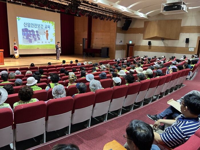 진주시는 29일 내동면 평생학습관에서 공원 및 녹지 유지관리 업무를 담당하는 현업근로자 185명을 대상으로 폭염 대응 산업안전보건교육을 실시했다.