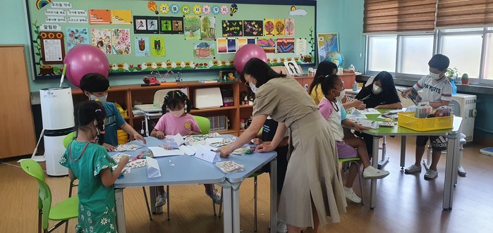 이번 독서교실에는 관내 돌봄교실을 이용하는 초등학생 40명(미원초등학교 금관분교 16명, 낭성초등학교 24명)이 프로그램에 참여했다.