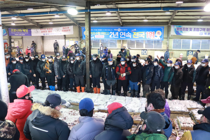 목포수협(조합장 김청룡)은 2022년 임인년 새해 수산물 첫 경매가 1월 3일 오전 5시 동부위판장에서 개최됐다.