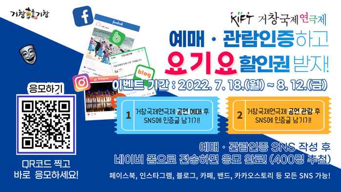 이번 이벤트는 연극제 상표권 이전 후 처음으로 개최되는 거창국제연극제를 축하하기 위하여 실시되며 추첨을 통해 관객 400명에게 요기요 할인권 5,000원을 지급한다.