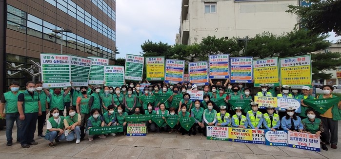 이날 새마을지도자들은 무더운 날씨에도 불구하고, ‘질서·탄소중립·청결’과 ‘에너지 절약 및 교통안전’등 다양한 주제의 피켓을 들고 유동인구가 많은 출근길에 적극적으로 홍보하며 동참을 권유했다.
