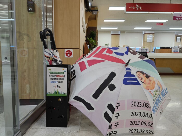 구 관계자는 “폐현수막을 우산으로 재활용하여 폐기물을 감량하는 한편 재활용 문화가 확산되도록 하고 있다”라며, “공유우산이 필요하신 분은 누구든 자유롭게 사용하고, 자원의 재활용에도 관심을 부탁드린다”라고 밝혔다.
