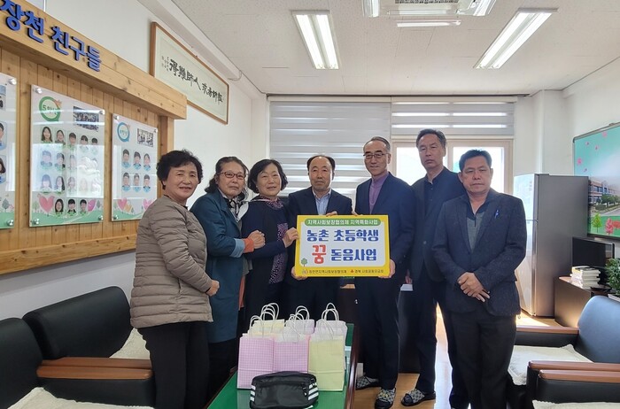 이날 행사의 학습꾸러미는 신입생들에게 필요한 학용품세트 및 텀블러로 구성됐고 전교생에게는 휴대 및 수납이 용이한 슬링백으로 아동의 외부활동에 필수품으로 준비되어, 관내 장천초등학교 신입생 및 전교생 60여명(병설유치원포함)이 꿈을 키울 수 있게 희망선물을 전달했다.