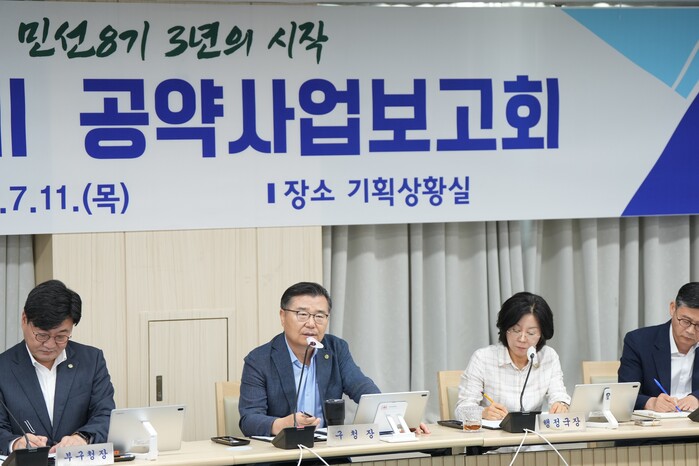 이날 보고회는 류경기 구청장을 비롯해 70여 명의 부서장이 참석한 가운데 민선8기 공약사업 추진현황을 점검하며, 후반기 구정 운영 방향과 함께 공약사업 추진에 있어 보완책을 심도있게 논의했다.