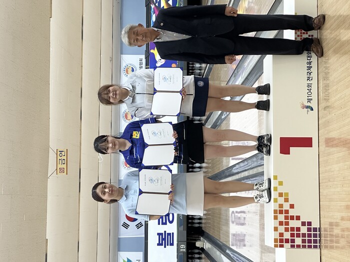 | ▲ 볼링 여자일반부 개인전 금메달을 획득한 곡성군청 김문정(가운데 파랑색)출처=전남도체육회 |
