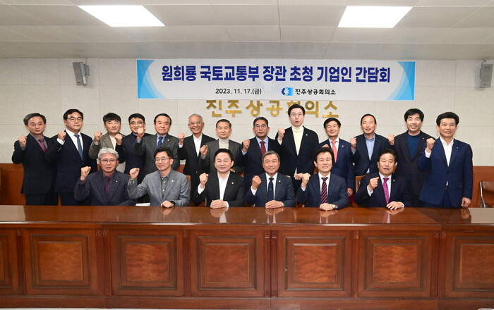 지난 17일 지역 현안 점검을 위해 진주를 방문한 원희룡 국토교통부 장관은 진주상공회의소에서 기업의 현장애로와 건의사항을 청취하는 간담회를 가졌다.