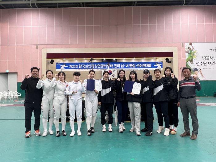 [남악=황승순 기자]전남도청 펜싱팀이 제25회 한국실업펜싱연맹회장배전국남녀펜싱선수권대회에서 단체전 우승을 차지했다.