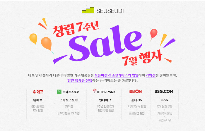 가구브랜드 ‘스스디’가 창립 7주년을 맞이하여 다양한 7월 행사를 진행한다고 2일 밝혔다.