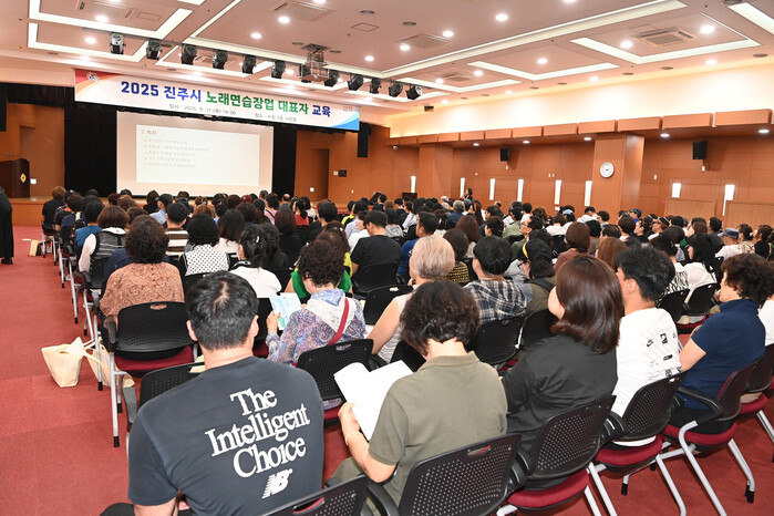 진주시는 11일 시청 2층 시민홀에서 관내 노래연습장업 대표자와 종업원 등 200여 명이 참석한 가운데 ‘2025년 노래연습장업 대표자 정기교육’을 실시했다.