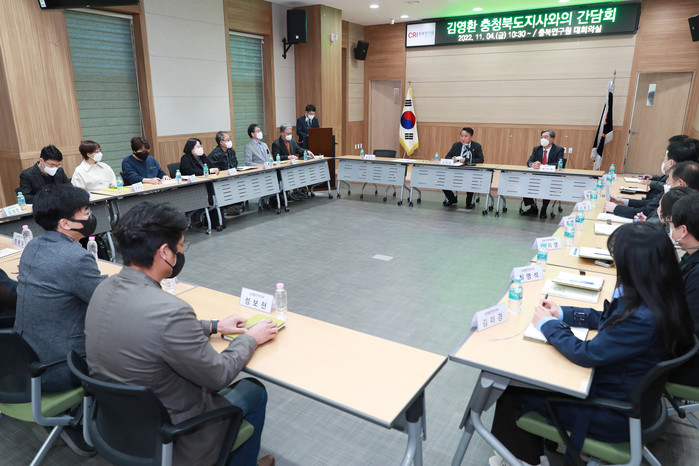 [청주=엄기동 기자] 충북연구원(CRI)은 지난 4일 연구원 대회의실에서 김영환 충청북도지사와의 간담회를 개최, 민선 8기 충북도정 방향에 대한 대화의 시간을 가졌다.
