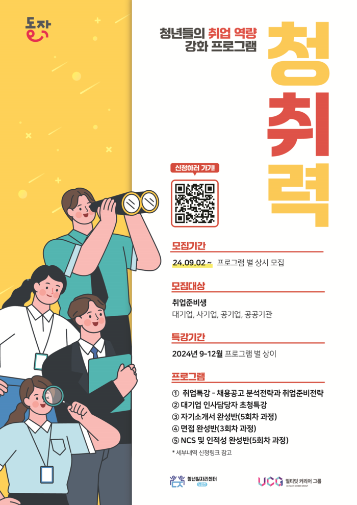[시민일보 = 여영준 기자] 동작구(구청장 박일하)는 취업에 어려움을 겪는 구직 청년을 돕기 위해 상반기에 이어 ‘2024년 하반기 청년취업역량강화(약칭 ‘청취력’)’프로그램을 진행한다고 밝혔다.