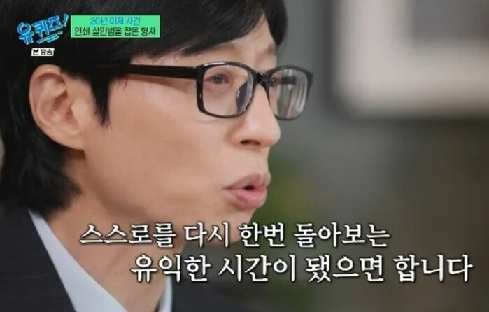 이날 유재석은 "저도 오랫동안 함께 했는데 오늘 막상 저 혼자 '유퀴즈'를 진행해야 한다 생각하니 참"이라며 "어쨌든 본인 스스로 이야기했듯이 스스로를 다시 한번 돌아보는 유익한 시간이 됐으면 좋겠다"고 밝혀 눈길을 끌었다.