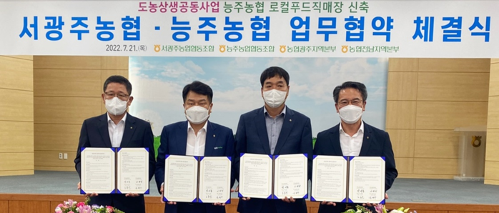 이번 업무협약식은 도시지역인 광주지역본부와 농촌지역인 전남지역본부간 공동사업을 위한 전남 최초의 업무협약으로 전국에서는 두 번째다, 이 날 도시 농협인 서광주농협은 올해 12월 개점을 목표로 화순 능주면에 신축 중인 능주농협 로컬푸드 직매장에 신축 자금을 투자하기로 결정했다.