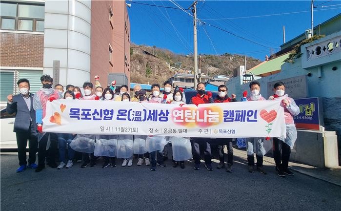 목포신협은 지난 27일 목포공고 총동문회와 함께 유달동 저소득층 가정에 온(溫)세상 나눔 캠페인 일환으로 연탄 나눔 봉사활동을 펼쳤다.