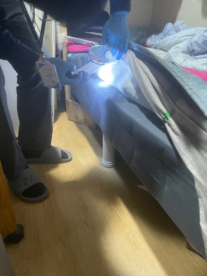 자율점검 사항에는 ▲침대 매트리스 표면, 밑바닥, 가장자리 솔기부분 ▲침대에서 먼 서랍장 뒷부분 ▲의자·소파 아랫부분 ▲벽면 스위치·콘센트 안쪽 등을 꼼꼼히 확인하고, 빈대 발견 및 피부 발진 신고 여부를 확인하도록 하고 있다.