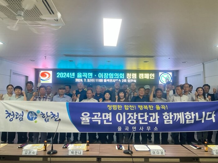 정경희 율곡면장은 “청렴한 지역사회를 만드는 데 전 직원과 이장단이 한마음으로 노력해줄 것”을 당부하며, “민·관 소통, 협력으로 신뢰 받는 율곡면이 되기 위해 최선을 다하겠다”고 말했다.