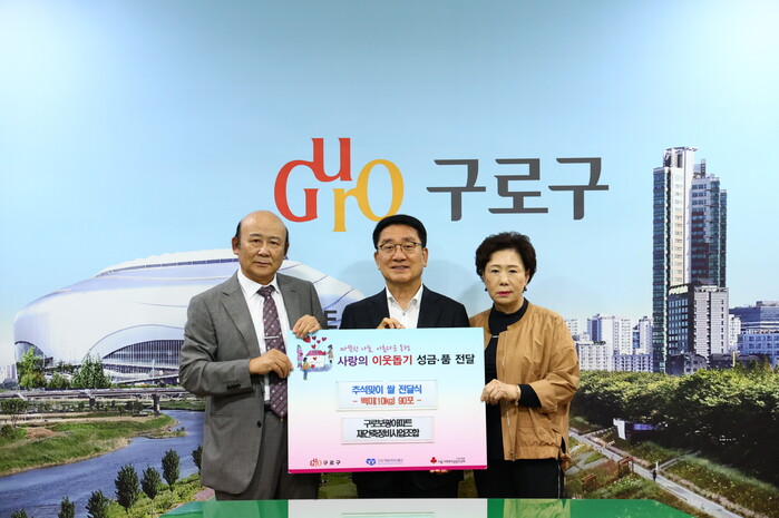 | ▲ 230921 15일 구로보광아파트 재건축정비사업조합(조합장 임병훈)이 구로구(문헌일 구청장)에 백미 400개를 전달했다. |