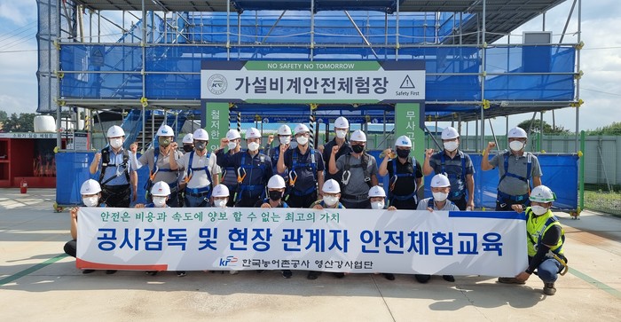 | ▲ 한국농어촌공사 영산강사업은 지난16일 국가철도공단 안전문화교육관(전남 무안군 소재)에서 공사감독 및 현장관계자를 대상으로 2차 안전체험교육을 실시했다.(출처=한국농어촌공사 영산강 사업단) |